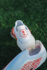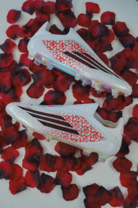 Práve motív ruže sa stal hlavným prvkom dizajnu tejto edície. Čistý biely zvršok dopĺňajú výrazné červené grafiky rozkvitnutých ruží, ktoré vytvárajú kontrast medzi eleganciou a dravosťou. Výsledkom je vizuálne veľmi výrazná silueta, ktorá na ihrisku okamžite zaujme.