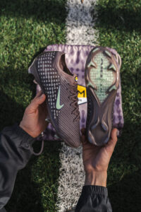Dominantným prvkom je metalická strieborná, ktorá dodáva celej kolekcii moderný, takmer „tekutý“ vzhľad. Lesklé detaily sa tiahnu od päty cez bočné strany kopačiek a vytvárajú dojem pohybu aj v pokoji – presne tak, ako Mbappé pôsobí na ihrisku. Tento efekt najviac vyniká pri modeli Air Max Plus VII, ale výrazne oživuje aj siluetu Mercurial.