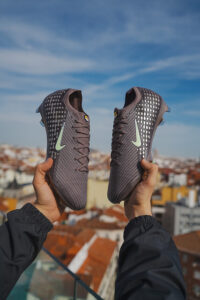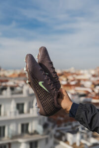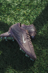Dominantným prvkom je metalická strieborná, ktorá dodáva celej kolekcii moderný, takmer „tekutý“ vzhľad. Lesklé detaily sa tiahnu od päty cez bočné strany kopačiek a vytvárajú dojem pohybu aj v pokoji – presne tak, ako Mbappé pôsobí na ihrisku. Tento efekt najviac vyniká pri modeli Air Max Plus VII, ale výrazne oživuje aj siluetu Mercurial.