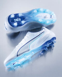Tretím modelom balíčka je King 20 vo farebnej kombinácii Puma Silver / Blue Jewel / Puma Black. Na rozdiel od futuristického vzhľadu modelov Future a Ultra stavia King na elegantnom a nadčasovom dizajne.