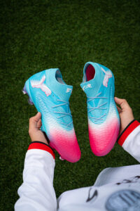 Farebné prevedenie kombinuje žiarivo modrú s plynulým prechodom do sýtej ružovej na špičke a bielymi akcentmi loga, čo vytvára moderný, nekompromisný vzhľad. Ultra ťa nielen vystrelí vpred, ale zanechá dojem ešte skôr, než sa dotkneš lopty.